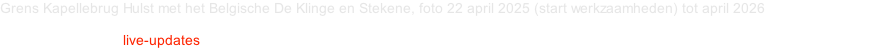 Home Oudere updates video 1: 3/7/2025 en video 2: 14/7/2025  Beelden (short video) te Kapellebrug tot het grenspunt en de renovatie van het fietspad. ( Zal een tijdelijke rijbaan worden ) © mediamen 2025 Update 11/8/2025   (geduld in de spits)                                                Update 29/8/2025   (minder tijdverlies in de dal)
